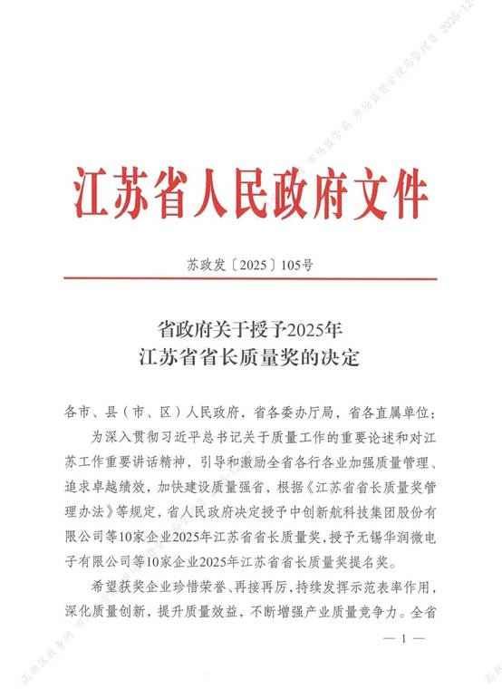 无锡唯一!宝通问鼎2025江苏省省长质量奖